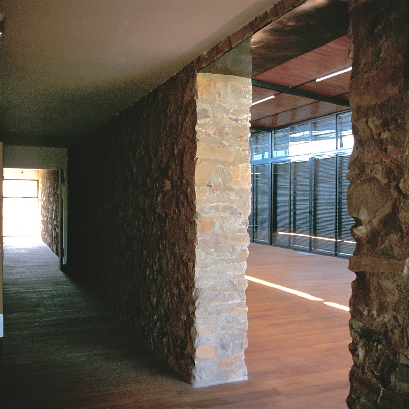 La edificación es, por tanto, un elemento de mediación entre el uso artificial y el entorno natural preexistente, un espacio de relación que, para no ser agresivo con éste, recurre a códigos formales propios del paisaje cultural de la zona.